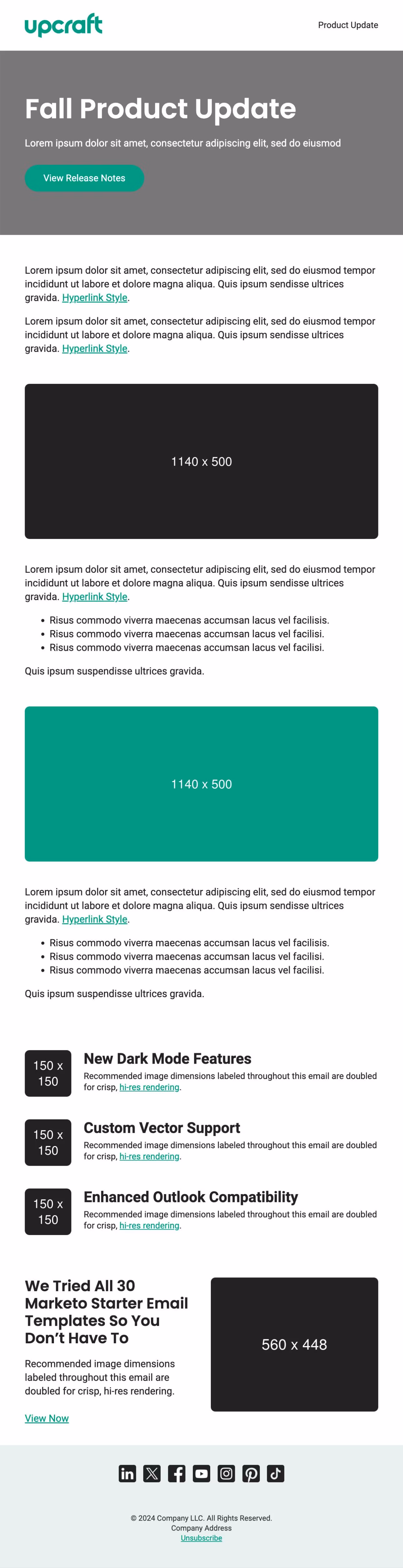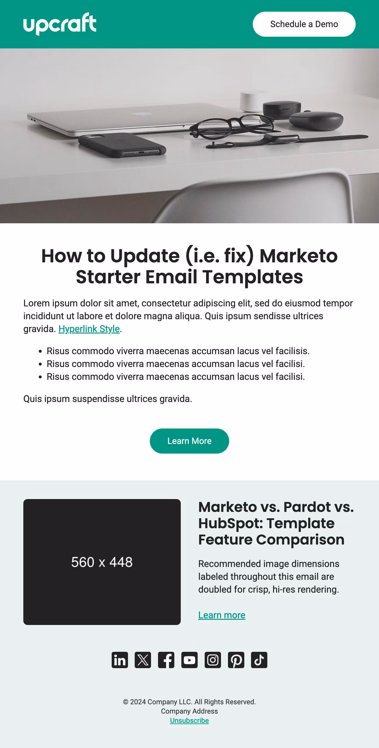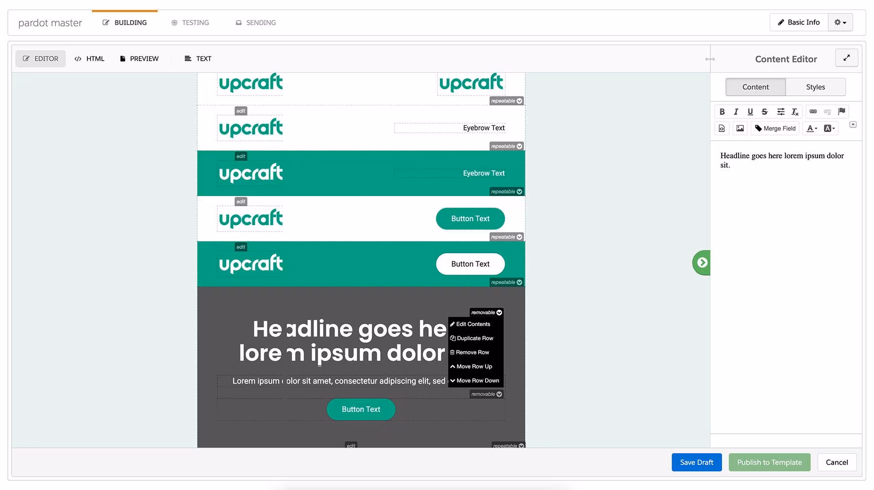 Experience everything the Pardot classic editor is capable of without any expensive, clunky third-party tools. Thorough use of removable/repeatable rows ensures that your emails are easy to edit while remaining scalable and future-proof.